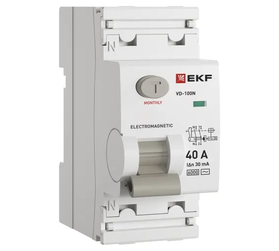 Выключатель дифференциального тока EKF ВД-100N 2P 40А 30мА тип AC эл-мех 6кА PROXIMA E1026M4030