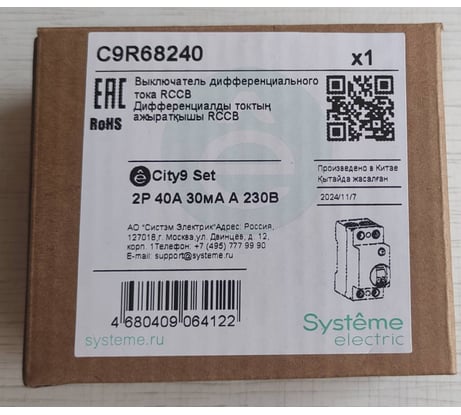 Отзывы о выключателе дифференциального тока Systeme Electric City9 set вдт 40а 2p 30ма тип-a 230в C9R68240