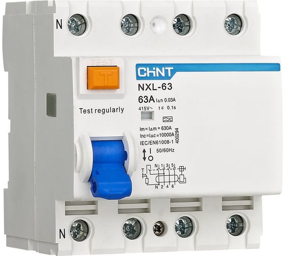 Выключатель дифференциального тока (УЗО) CHINT NXL-63 4P 40А 30мА 6кА тип A AX (R) 400243