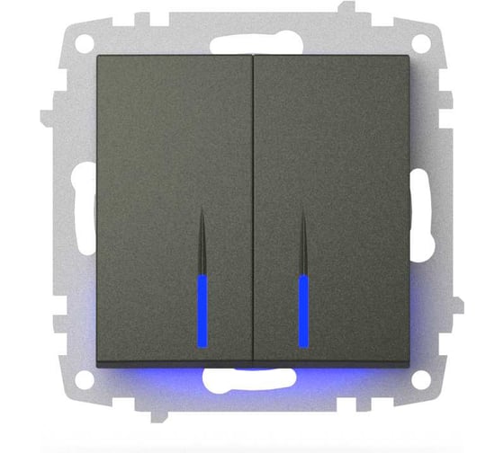 Выключатель двухклавишный с подсветкой ELBI Zena Vega дымчатый M+K 609-011100-203