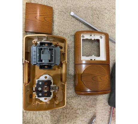 Между собой нет перемычки, придется самому проводами соединять (розетку и выключатель между собой по фазе), из-за разницы толщины проводов (на выключатель и розетку) не сильно хорошо получается, лучше когда между собой они уже соединены перемычкой. Цвет в описании сосна..ну если только морилкой покрытая и потом лаком..цвет в реале темный. Опять же пластик с которого лили корпус могли темный какой сделать или бежевый хотяб , а так белый с верху покрашен и любая царапина будет очень заметна.
