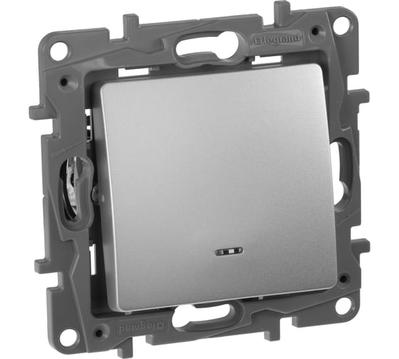 Выключатель IEK ETIKA 1-клавишный, с подсветкой/индикатором сх1L 10АХ б/к алюминий 672403