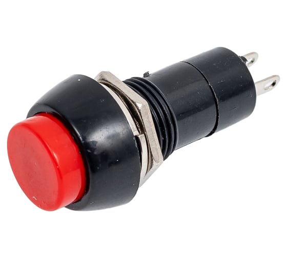 Выключатель-кнопка 250V 1А (2с) ON-OFF красная предназначена для коммутации электрических цепей переменного тока напряжением до 250В, путем включения-выключения питающего провода. Кнопки применяются в качестве комплектующих изделий различного электрооборудования (в аудио системах, блоках питания, электроустановках на различных производствах, автомобилях, и многих других местах). Разнообразные цветовые варианты исполнения позволяют эффективно комплектовать панели управления. Изделие состоит из двух основных частей - лицевой части (головки) и контактной, и имеет пружинный возвратный механизм. Монтаж осуществляется без применения винтов на плоских панелях толщиной от 0.5мм до 3мм, с помощью гайки. Подключение контактов осуществляется с помощью пайки.