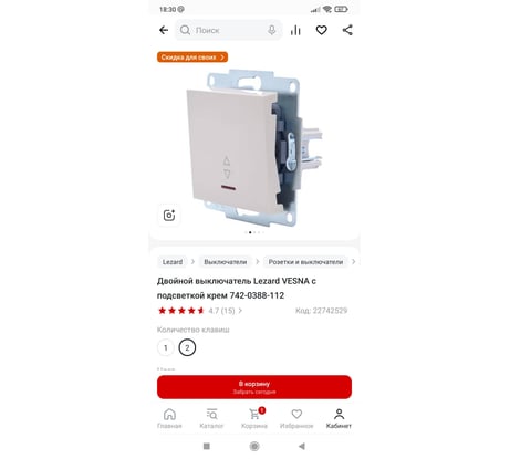 Выключатель Lezard VESNA с подсветкой крем 742-0388-111