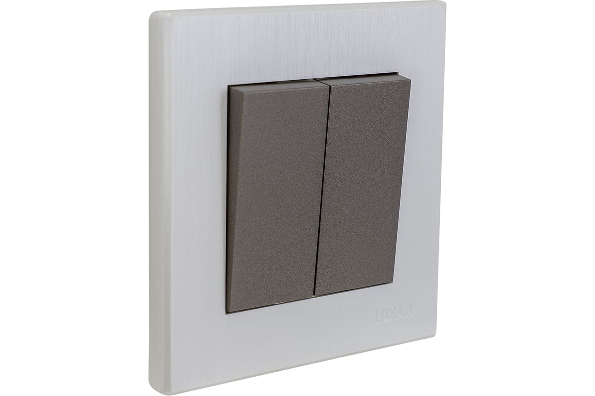 Выключатель Luxar Mosaic с/у 2-кл. титан/белый с рамкой, 250В 10А (20.011.04) 4606400430407