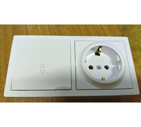 Выключатель проходной и розетка Lezard LETO с заземлением, белый горизонталь 752-0200-170BVP