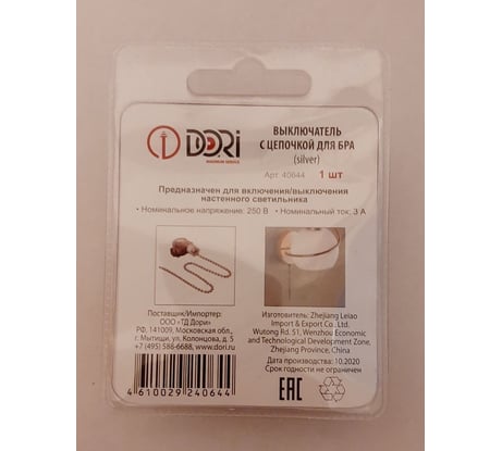 Вопросы и ответы о выключателе DORI с цепочкой silver 40644