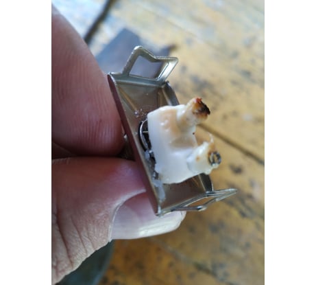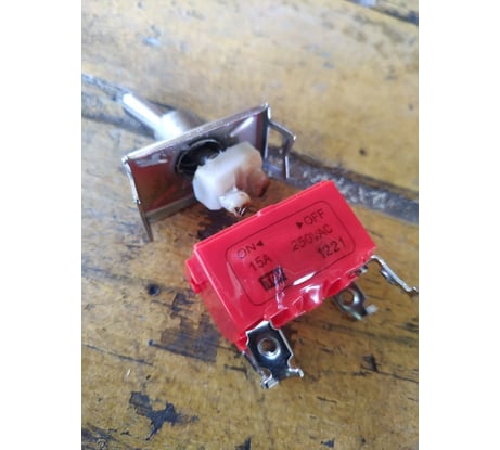Сломалась ручка тумблера. Был встроен в распаячную коробку под крышей навеса для вкл. прожектора, пользовался раз 10. После зимы ручка отвалилась! Видисо свежий воздух не доч него.