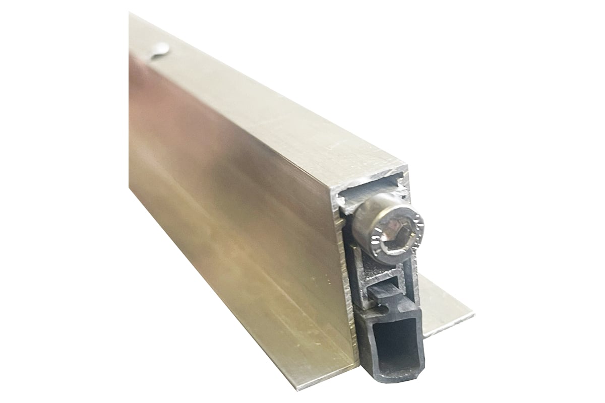 Выпадающий порог HOME 630 мм POR630 - это металлический П-образный профиль, внутри которого установлены качественные латексные шторки-уплотнители, подпружиненные специальными вмонтированными механизмами. Стопорная кнопка, приводящая пружины в движение, расположена снизу, на боковом торце дверного полотна.