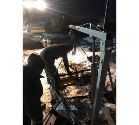 - Конструкция позволяет разобрать пресс, перенести детали по частям на место проведения работ (при отсутствии возможности доставки на место транспортными средствами), собрать его и приступить к работе. Следовательно, появляется возможность производить работы по ремонту гусеничной цепи за пределами сервисной зоны.