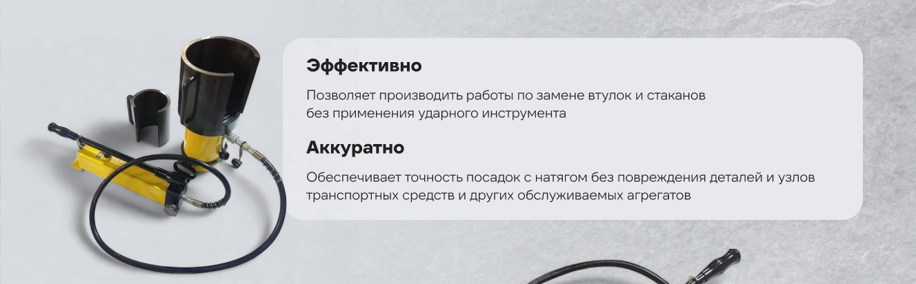 Применение данного выпрессовщика (съемника) втулок рукояти позволяет быстро и эффективно производить ремонтные работы и способствует снижению трудозатрат. Обеспечивает точность посадок с натягом без повреждения деталей и узлов транспортных средств и других обслуживаемых агрегатов.
