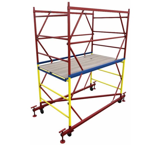 Рабочая площадка размером 1,2×2 м, расположенная на высоте 1,8 м, предоставляет достаточно места для размещения инструментов и материалов. Конструкция состоит из одной секции высотой 1,2 м, что облегчает сборку, транспортировку и хранение.