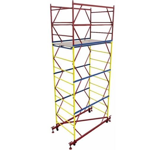 Вышка-тура - это прочная и безопасная модульная конструкция, предназначенная для выполнения работ на значительной высоте. Стальная рама обеспечивает высокую устойчивость и долговечность, а модульная сборка из трёх секций по 1,2 м позволяет легко увеличивать рабочую высоту до 5,2 м.