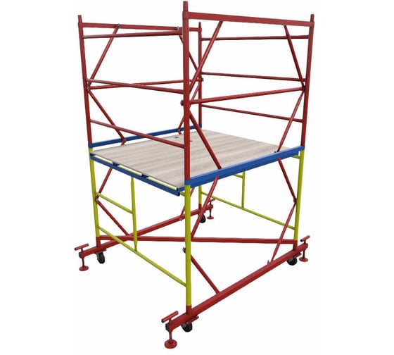 Вышка-тура - компактная и надежная модульная конструкция, предназначенная для безопасной работы на небольшой высоте. Конструкция состоит из одной секции высотой 1,2 м, обеспечивая рабочую высоту 2,8 м, что идеально подходит для монтажных, ремонтных и отделочных работ в помещениях с ограниченной высотой.