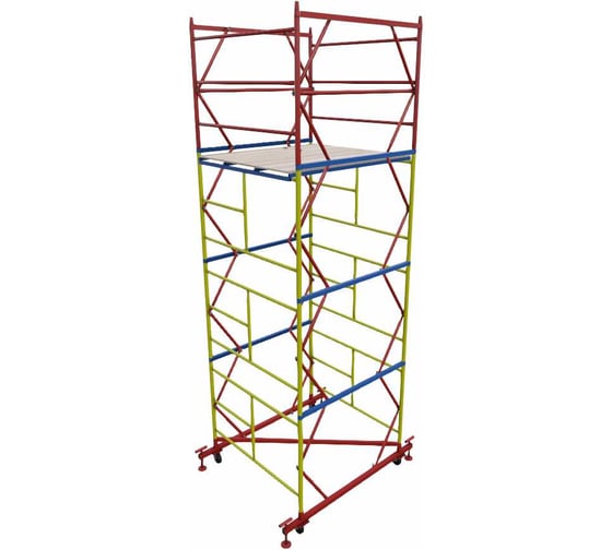 Каркас выполнен из стальной трубы, что обеспечивает высокую прочность и устойчивость конструкции. Площадка входит в комплект поставки, что делает использование вышки удобным с первого применения.