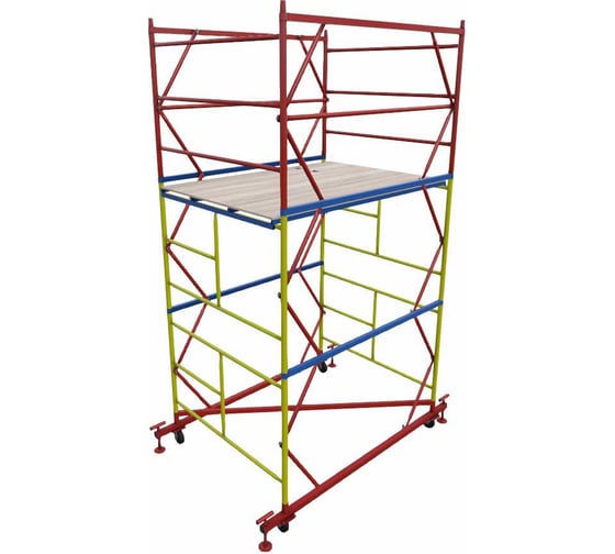 Вышка-тура - надежная модульная конструкция для безопасной работы на высоте до 4 м. Двухсекционная сборка обеспечивает стабильность и удобство при выполнении строительных и монтажных работ.