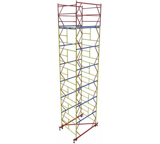 Вышка-тура - надежная модульная конструкция для безопасной работы на высоте до 8,8 м. Шестисекционная сборка обеспечивает устойчивость и удобство при выполнении монтажных, строительных и ремонтных задач.
