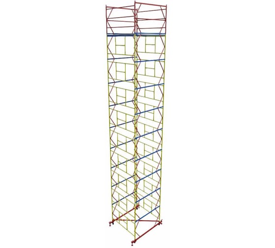 Вышка-тура - устойчивая и надежная модульная конструкция для безопасной работы на высоте до 12,4 м. Девять секций обеспечивают максимальную устойчивость и позволяют использовать вышку в любых условиях.