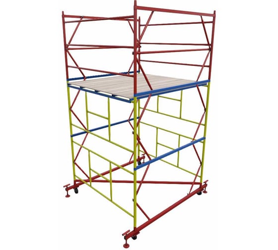 Вышка-тура - надежная модульная конструкция для выполнения строительных и монтажных работ на высоте до 4 м. Двухсекционная сборка обеспечивает дополнительную устойчивость и безопасное размещение работников и инструментов на платформе.