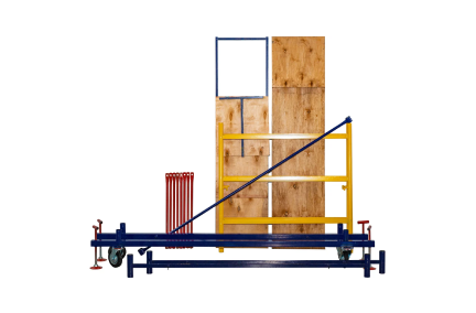 Модель легко собирается без использования специального инструмента, все элементы соединяются флажковыми механизмами. Благодаря наличию больших прорезиненных колес, вышку можно легко перемещать по объекту. Колеса также снабжены фиксаторами положения, что позволяет тонко подрегулировать высоту вышки и зафиксировать ее от нежелательных перемещений во время работ.