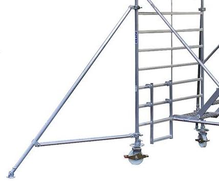 - Быстросъемные угловые подпоры позволяют легко перемещать вышки в узких проходах;