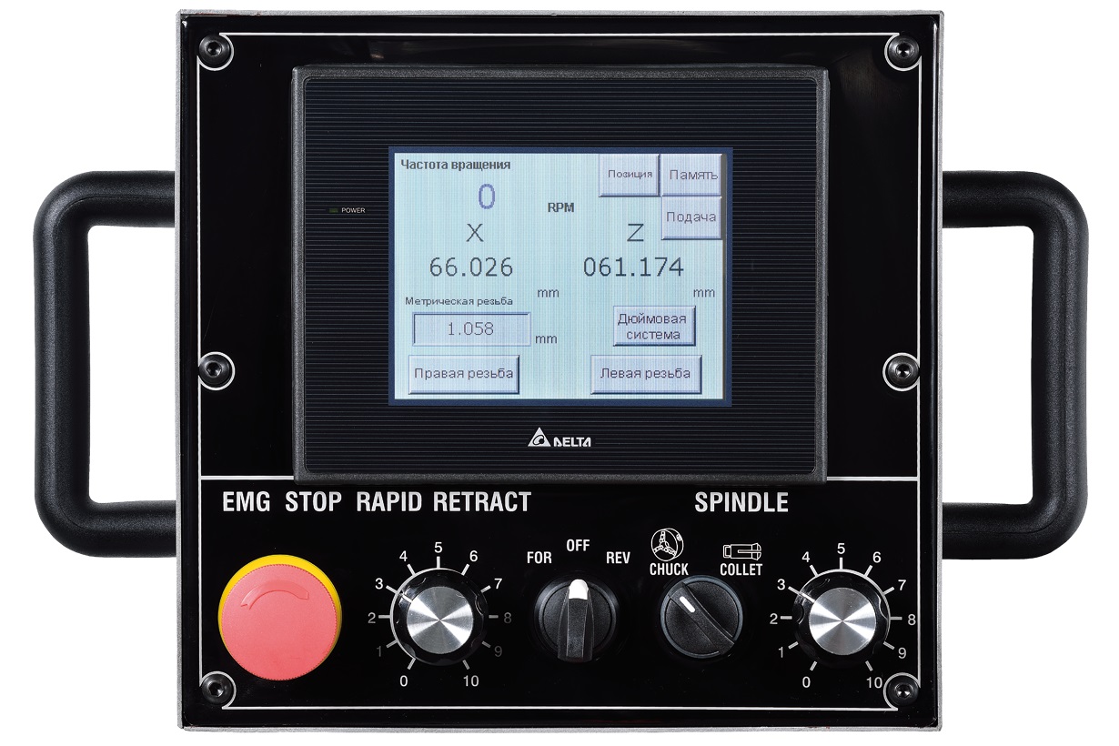 - Значение шага резьбы задаётся на сенсорном дисплее;