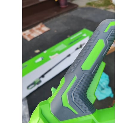 Удобно, что подходят "макиита" подобные аккумуляторы. Есть заплечный ремень, благодаря чему на весу держать комфортно. На более крупных ветках тяжело пилить. Есть отскок, к которому на весу ещё при пилении надо принаровится.