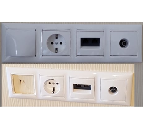 Необходимо было в мультирамку Legrand Valena установить заглушку для кабельного вывода из трубы заложенной в стене в качестве кабельного канала. К сожалению родной ввод от Legrand Valena 774447 оказался дорог в 3-4 раза, так еще и внутренний механизм от него был не нужен, он просто мешал. В качестве альтернативы на свой страх и риск решил рассмотреть применение этого механизма, предварительно уточнил, что размер заглушки механизма и внутренний размер рамки Legrand совпали 58*52 примерно. При помощи нехитрых манипуляций (удалил лапки и крепежи, подточил рамку механизма) "скрестил" Schneider Electric и Legrand. Прикрепил к стене на саморезы. В итоге заглушка крепко установлена в рамке без люфта, а сама рамка крепко прилегает к стене.