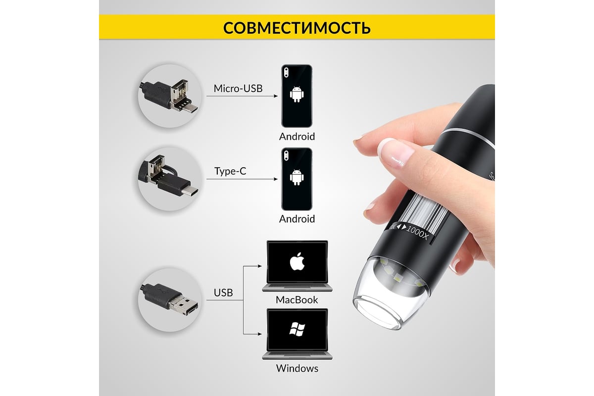 - Практичный комплект Регулируемый штатив и кабель длиной 1,5 м для удобного использования