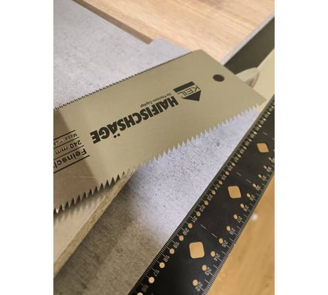 Очень хорошее качество изготовления, её приятно держать в руках и ей приятно работать. Позволяет пилить заподлицо с плоскостью детали, не повреждая её поверхность. Если использовать что-то как упор для пиления, зафиксировав плоскость, в которой движется пила, то получается сделать очень точные резы. Распускать доску вдоль я не пробовал -‐ это гораздо быстрее и проще сделать на станке, но есть ощущение, что с упором это можно сделать относительно качественно и быстро. Отличное качество реза, по крайней мере на новой пиле. Рез ровный, пропил тонкий. Сейчас заточка отличная, насколько хорошо она будет держаться -- посмотрим, пока пила ещё совсем новая.