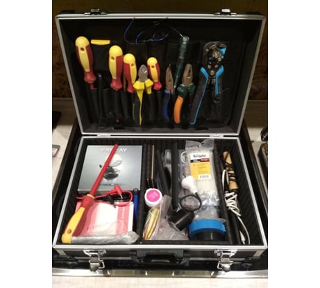 Для любителей внешнего вида в самый раз, китайцы ржут, хватило же ума из картона сделать коробки и загнать в алюминиевые профиля. При небольшом наполнении инструмента развалился, тут и обнаружились все названия и назначения "ящика-чемодана". Хранить воздух лучше в ином виде, но замки держут, ровно до момента поднял и перенёс на метр с сторону.