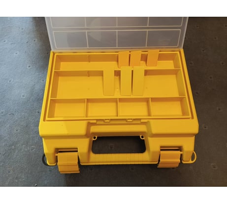 Хороший кейс. Цветовое решение яркое, заметное. Объем предельно необходимый для характерных инструментов и есть отсек для мелких деталей крепления(крепёжной группы и сопутствующих мелких изделий). Закрывается надежно. Можно использовать для хранения воблы.
