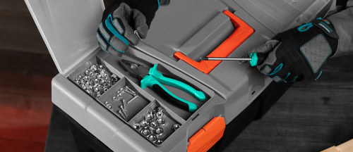 Ящик для инструмента Stels 90706, 23 дюймов, габаритами 590 х 300 х 300 мм, из пластика, предназначен для переноски и хранения инструментов, хозяйственных мелочей, рыболовных снастей. Содержимое не рассыпется, поскольку он надежно закрывается. Встроенные в крышку отделения обеспечивают быстрый доступ к крепежам и другим необходимым предметам. Большой ящик для хранения инструментов будет полезен дома, на даче, в гараже и на рыбалке.