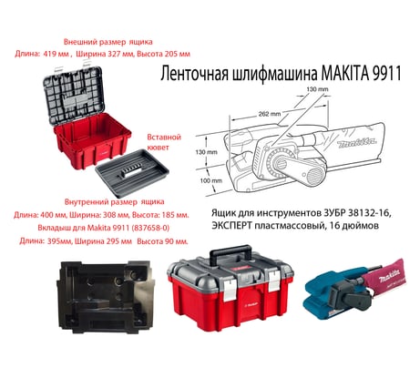 Ящик великолепный. Прочный, вместительный. Брал под ручную церкулярную пилу макитта 600. Вошла как родная, плюс много чего туда дополнительно положил.