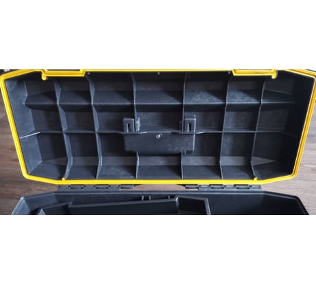 Выбирал ящик долго, покупал самые разные, от отечественных до стенли, но более дешевого уровня, для стационарного хранения инструментов дома. Этот - наиболее удачный, позволяет сложить в него много инструментов и расходники к нему, организовав внутри порядок, а не внавал забрасывать, и рыться в поисках мелочи, которая на дно всегда падает, как в высоких моделях. Плохо, конечно, что даже такой примитив, как ящик, не самого дешманского уровня, приходится доделывать, допиливать самому: обрезать облои, фиксировать ось в петлях, чтобы она хотябы сама по себе не потреялась в самый ненужный момент. Но в целом, я доволен изделием.