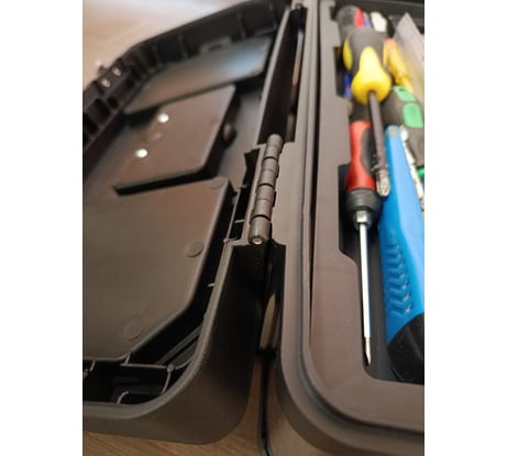 Самое приятное - за свои без малого 1000 рублей не ожидал вообще ничего. По итогу получил не самый тонкий пластик, прочные петли и замки, пару съёмных органайзеров и отсек под биты. Сундук ощущается прочным и тяжёлым. Снял пластиковый облой, крышки органайзеров начали запираться получше. Словом, очень рекомендую, если нужен ящик для хранения домашнего инструмента. За свои деньги отличный выбор.