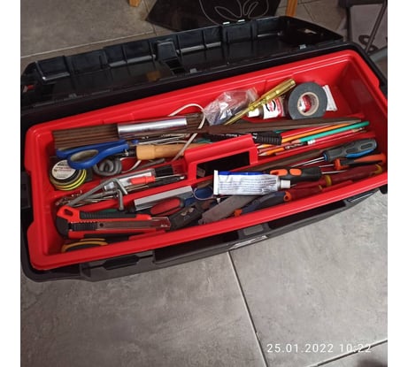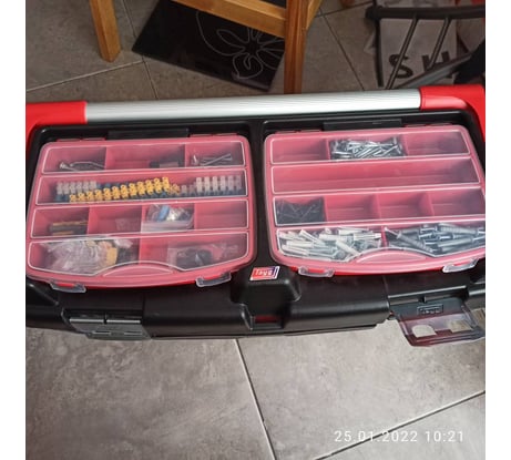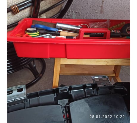 Нужен был чемодан для расходных материалов, саморезов и т.д., выбор пал на этот. Внутренний лоток я вытащил, потому что занимал лишнее внутреннее пространство. При закрытии полного ящика его начинает косить. Закрыть проблематично. Если защелкой сразу в нужное место не попадешь приходится его выгинать обратно. Лотки на крышке классные. Понравились.