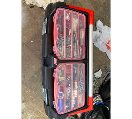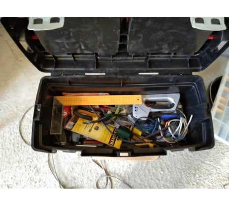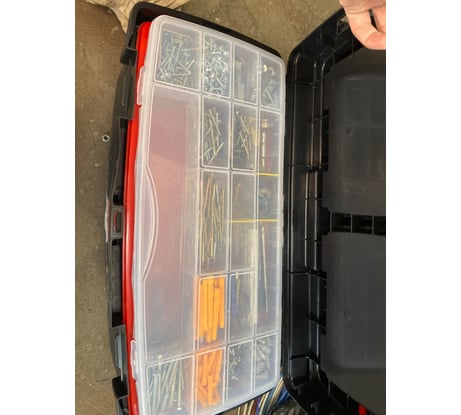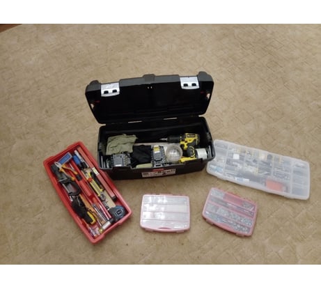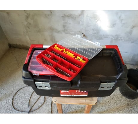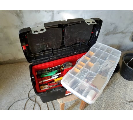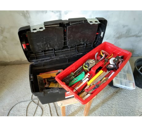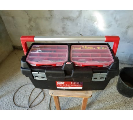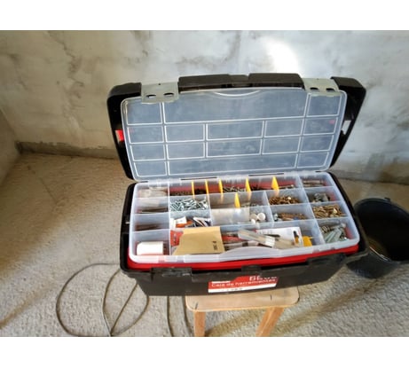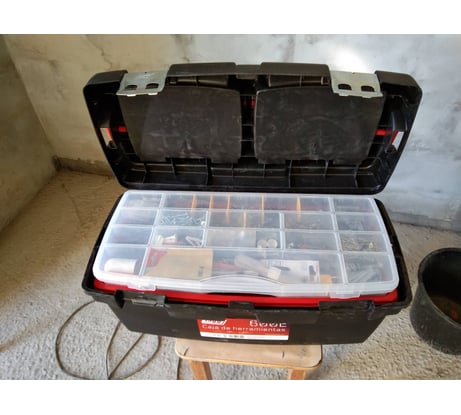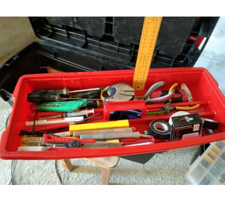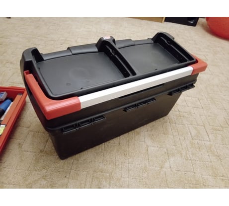 Вместительный удобный ящик, переложил в него инструмент из старого переполненного ящика и разных коробок. Все хорошо уместилось и еще много места осталось.