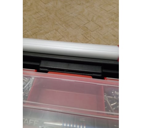 Т. к. на крышке есть отсеки, куда можно положить например: биты, головки, буры, сверла крышка приобретает значительный вес, и может в месте петель обломиться, т к она открывается только на 90°-110° и весь. вес крышки держится на 3-х относительно слабых петлях, и эти отсеки сверху отсоединяются, ято с одной стороны хорошо, но они там закреплены не надёжно, поэтому могут выпасть, надо тоже учитывать