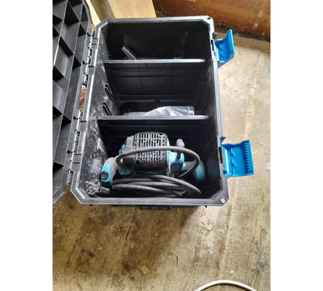 Брал для фрезера Макита 23 серии, влез с маленькими доработками в идеале позже проклею плотный поролон 1 см толщиной будет супер, снес роторейзером боковые и нижние направляющие для перегородок и сверху в крышке тоже слегка проредил перегородки и норм