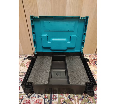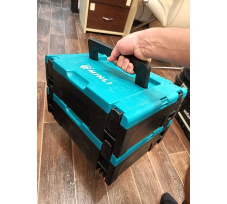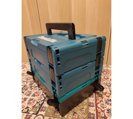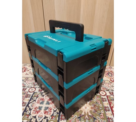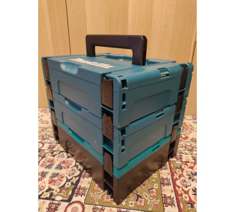 Стыкуется с макитой как сверху так и снизу, первые пару раз тяжело поймать момент когда защелкивается. На фото один ящик под макпаком3, второй сверху этого макака.