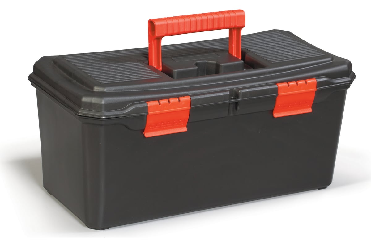 Ящик для инструментов серии BASIC имеет внутренний съемный лоток с ручкой, 2 замка-защёлки. Удобная ручка, для переноски, фиксируется на крышке в горизонтальном положении. Материал ящика выполнен из полипропилена. Изделие не боится влаги, имеет небольшой вес. Объем 23 л.