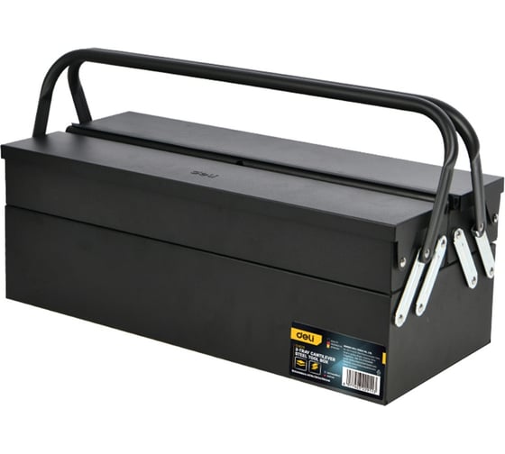 Ящик для инструментов трёхъярусный раскладной металлический Deli DL6232 450 × 200 × 215 мм Прочный органайзер с четырьмя полками — всё видно и под рукой сразу Идеален для гаража, мастерской, выездов и хранения большого количества инструмента
