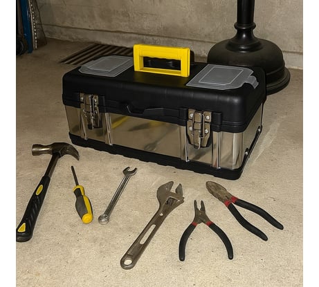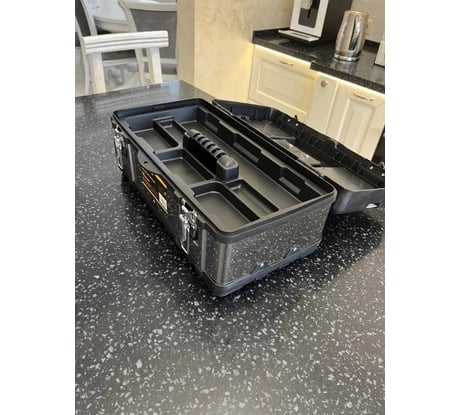 Вместительное внутреннее пространство легко помещает весь мой арсенал отверток, ключей и измерительных приборов. Прочный пластик выдерживает серьезные нагрузки, а удобная ручка делает переноску комфортной даже при полной загрузке. Надежные защелки гарантируют, что крышка не откроется самопроизвольно