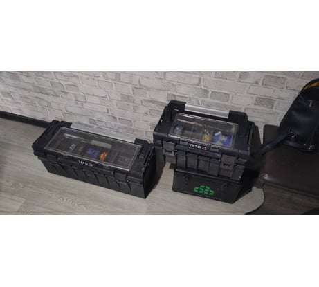 Брал первый больше для бытовых целей, но успел с ним сделать ремонт в деревне и помочь с ремонтом в детском саду. Искал специально с длинным отсеком под верхней прозрачной крышкой, чтобы можно было положить карандаш, отвертку-пробник, небольшую линейку и прочее. В ящик в итоге на данный момент переехало все что связано с электрикой и частично расходники для сантеха, разный инструмент типа отверток, съемников, тестер, сизы, прокладки, герметики и т.д. Внутренний лоток, который меньше длины ящика очень удобен - сдвинув его в ту или иную сторону можно достать инструмент из самого ящика, который по частоте использования располагаешь сверху, и не надо куда-то выкладывать этот лоток. Цены на них упали - надо теперь второй, чтобы на постоянку "жил" теперь в деревне.