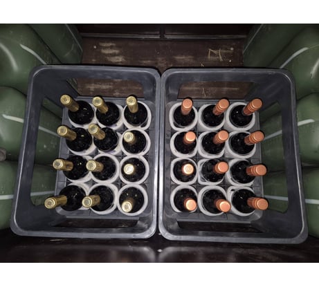 Хорошие ящики, достаточно прочные. Проехали в прицепе 2000 км, не сломались. Немного уплотнил бутылки, что бы не болтались.