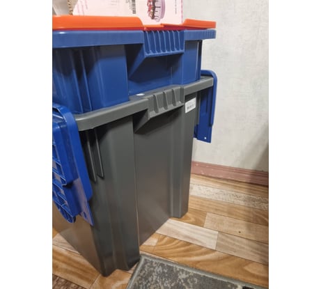Ящик полимерный 600x400x365 Safe PRO гл. дно/сплошной серый с синей крышкой Тара.ру 33152 - обладает контрастным набором цветов для большей заметности.