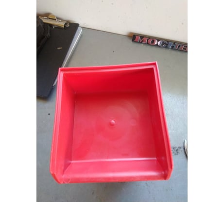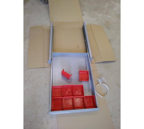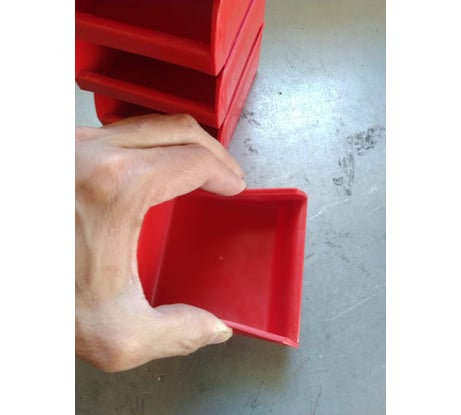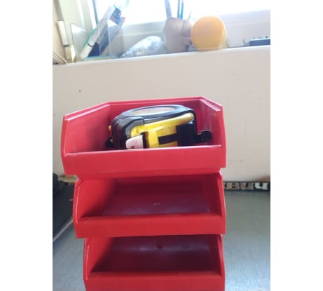Удобный ящик для небольших метизов или разборки всякого разного. Передняя стенка с наклоном, чтобы легче брать содержимое. Сзади зацеп во всю ширину - на DIN-рейке или монтажной шине держится надёжно.