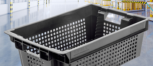 - Конусная форма Ящики вкладываются друг в друга и штабелируются при развороте на 180°