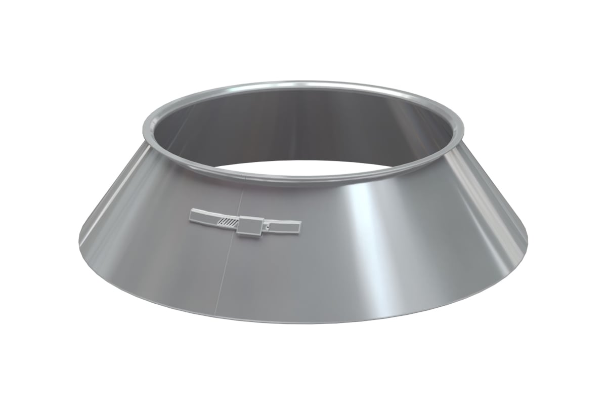 Юбка РОССТИН с бортом с болтовым механизмом стяжки. Из нержавеющей стали. Служит для герметизации монтажных зазоров Диаметр: 230 мм; Толщина металла: 0.5 мм; * Марка стали: AISI 304.
